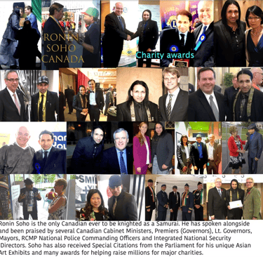 SOHO has set a record at the Toronto Panam & Parapan Am Games - the biggest ever sporting event ever held in the Americas. He has also been invited to meet 4 Prime Ministers and lecture alongside over a dozen Canadian Cabinet Ministers of various parties. Further, Soho has received many honours and awards for his charity work from the Mayors of Scarborough, Ajax, Pickering and Toronto -- and even lectured alongside John Tory during the Covid crises. In addition, Soho served as the Asian Community leader and liaison for the Canadian Government's RCMP Commander's Council, Ministry of Solicitor General and Seniors Homes & Services .