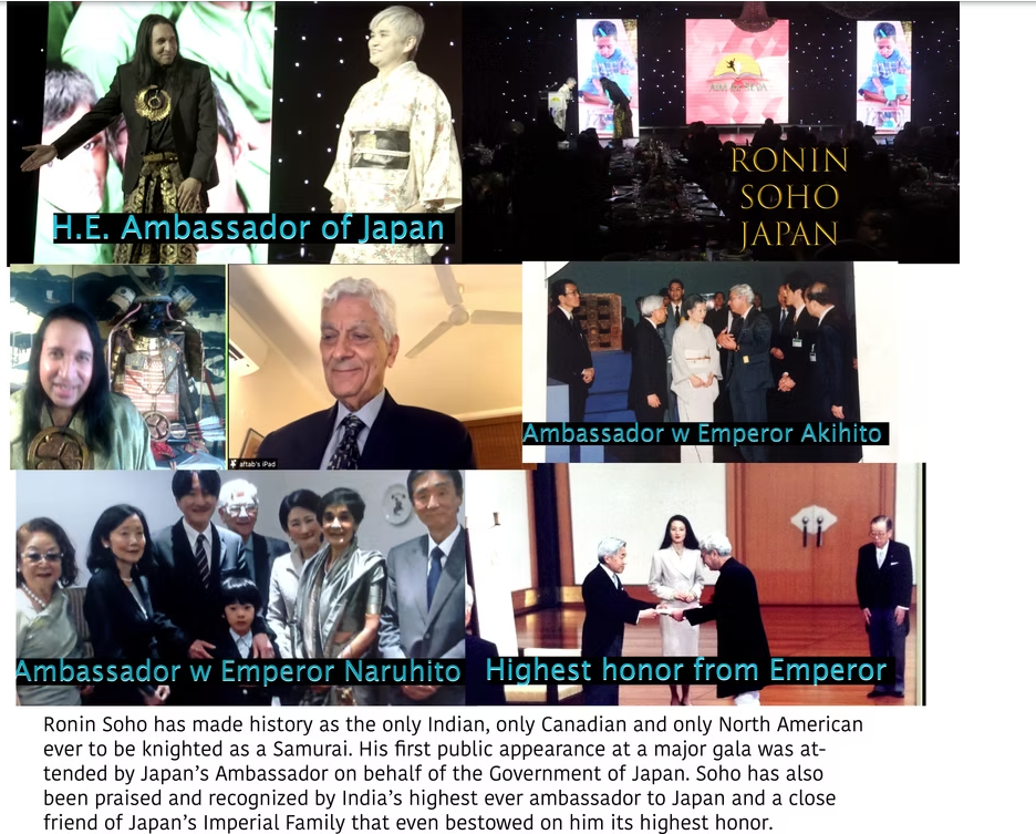Soho is the only non-Japanese person to be endorsed by the Samurai clans of Japan as well as the highest honourees and friends of His Majesty the Emperor and the Imperial Family. The media has referred to Soho as "one of the world's foremost experts on Japanese and Asian culture".